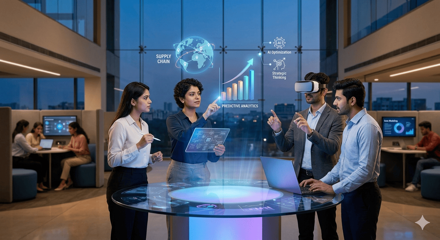 In a tech-enhanced PGDM experience, students work on projects that mimic "Smart Factories." This exposure helps them understand how to manage human-machine collaboration. By mastering Industry 4.0 Skills, students learn to oversee complex systems where humans and algorithms work side-by-side.